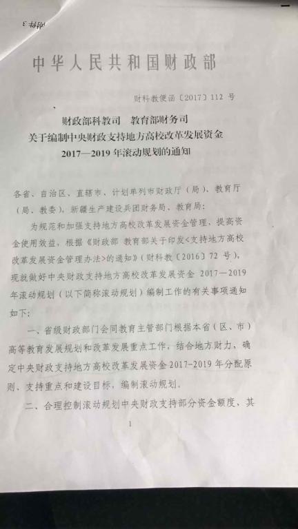 关于编制中央财政支持地方高校改革发展资金2017-2019年滚动规划的通知